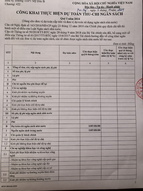 CÔNG KHAI THỰC HIỆN DỰ TOÁN THU-CHI NGÂN SÁCH QUÝ I NĂM 2024