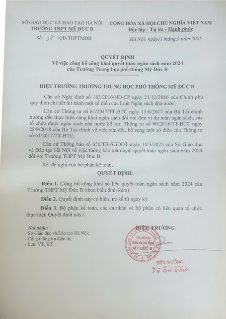 QUYẾT ĐỊNH VỀ VIỆC CÔNG BỐ CÔNG KHAI QUYẾT TOÁN NGÂN SÁCH 2024